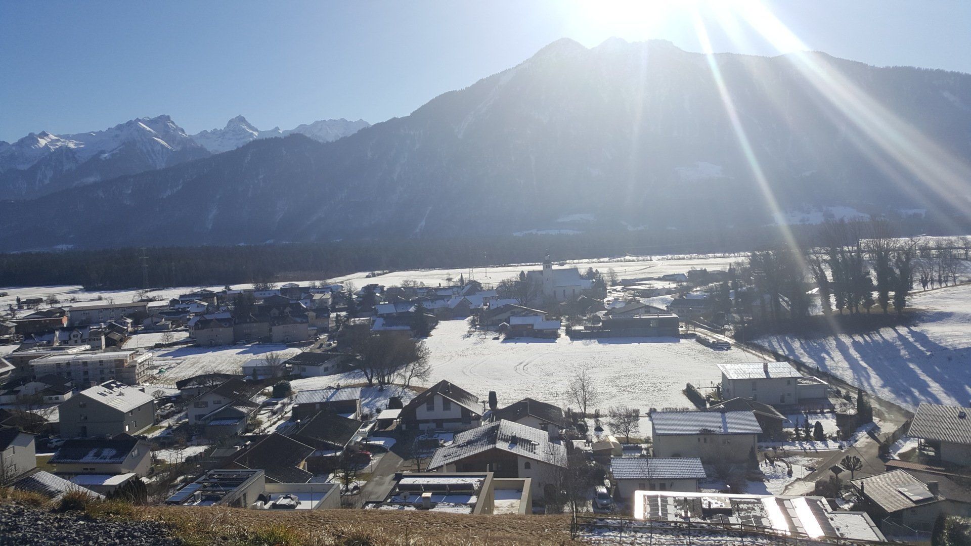 Hier in der Anhöhe von Bludesch, ca. 250 m vom «Kloosa-Kirchle» entfernt, auf der Bludescher Straße Richtung Schnifis beim Sandloch links abbiegen auf den Runkelinaweg. Die Info-Tafel befindet sich bei der ersten Bank.
