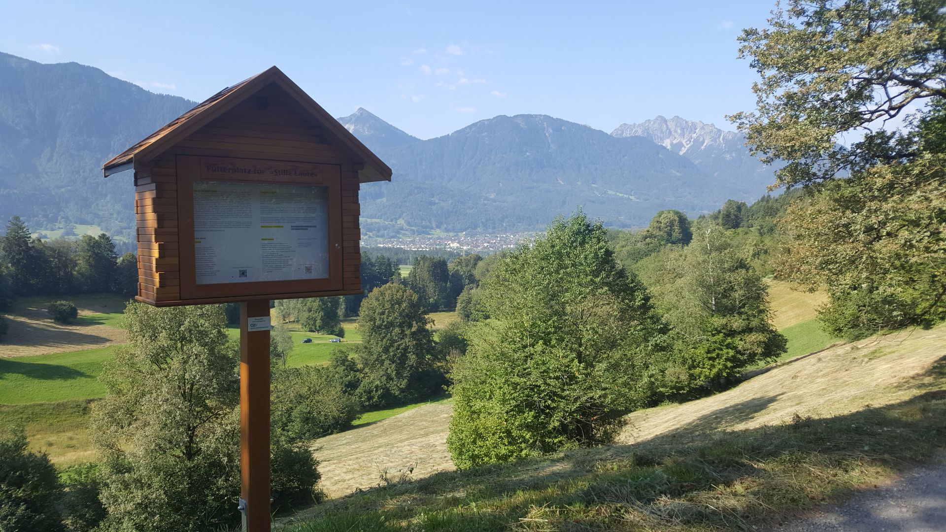 Hier in der Anhöhe von Bludesch, ca. 250 m vom «Kloosa-Kirchle» entfernt, auf der Bludescher Straße Richtung Schnifis beim Sandloch links abbiegen auf den Runkelinaweg. Die Info-Tafel befindet sich bei der ersten Bank.