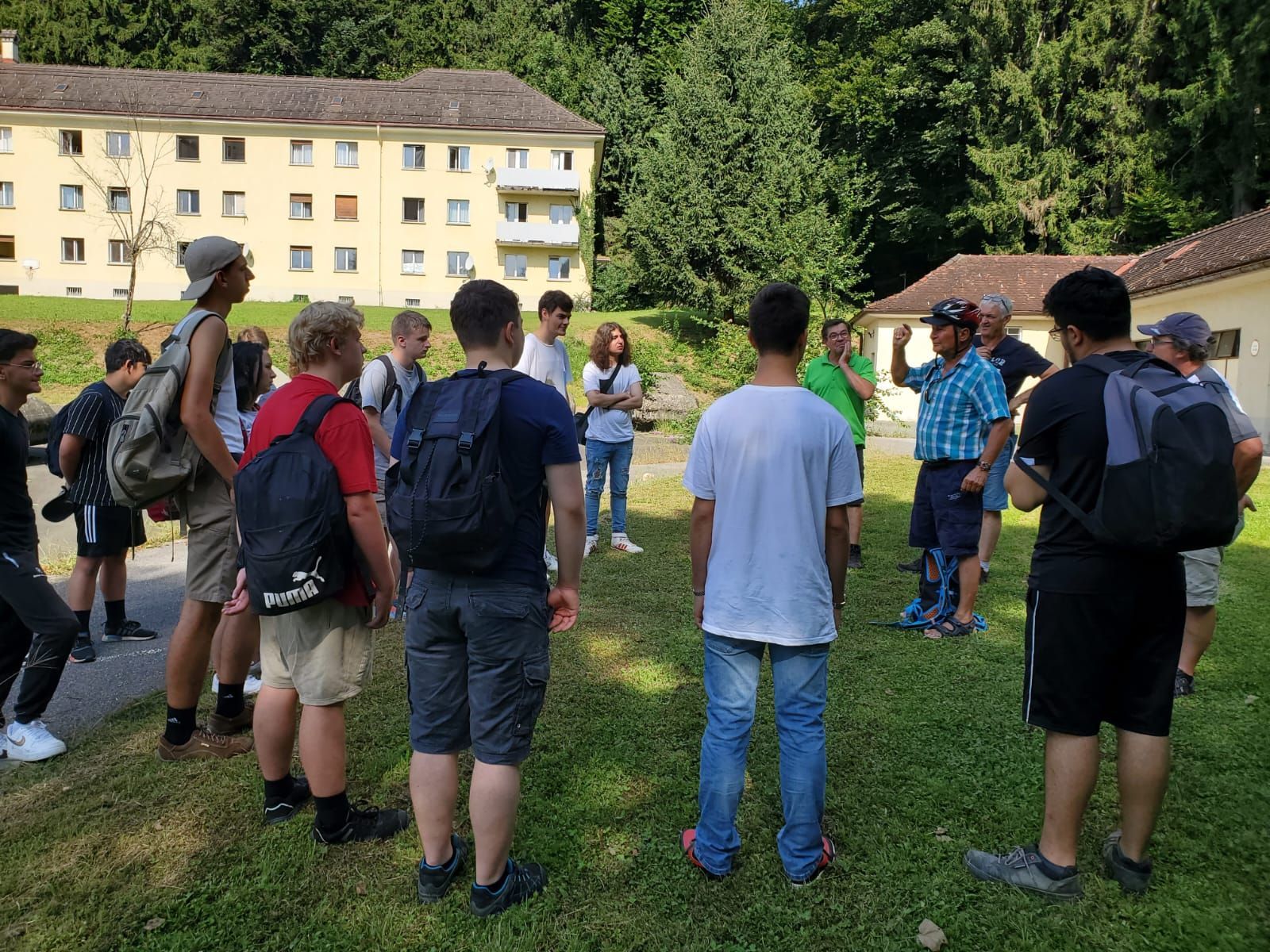 Am Mittwoch, dem 23. August sind bei traumhaftem Kaiserwetter Tischler- und Malerlehrlinge mit ihren vier Lehrmeistern zum diesjährigen Betriebsausflug mit drei kleinen Bussen in den Walgau aufgebrochen. Auf dem Areal der Flüchtlingsunterkünfte auf Gaisbühel wurden sie schon von Klaus Mathes vom Verein "Kulturbrücke Bludesch" erwartet. Klaus informierte über das weitere Geschehen und wanderte mit der gesamten Crew vom Gaisbühel in Richtung des internationalen, literarischen Wanderweges "Stille Laute".