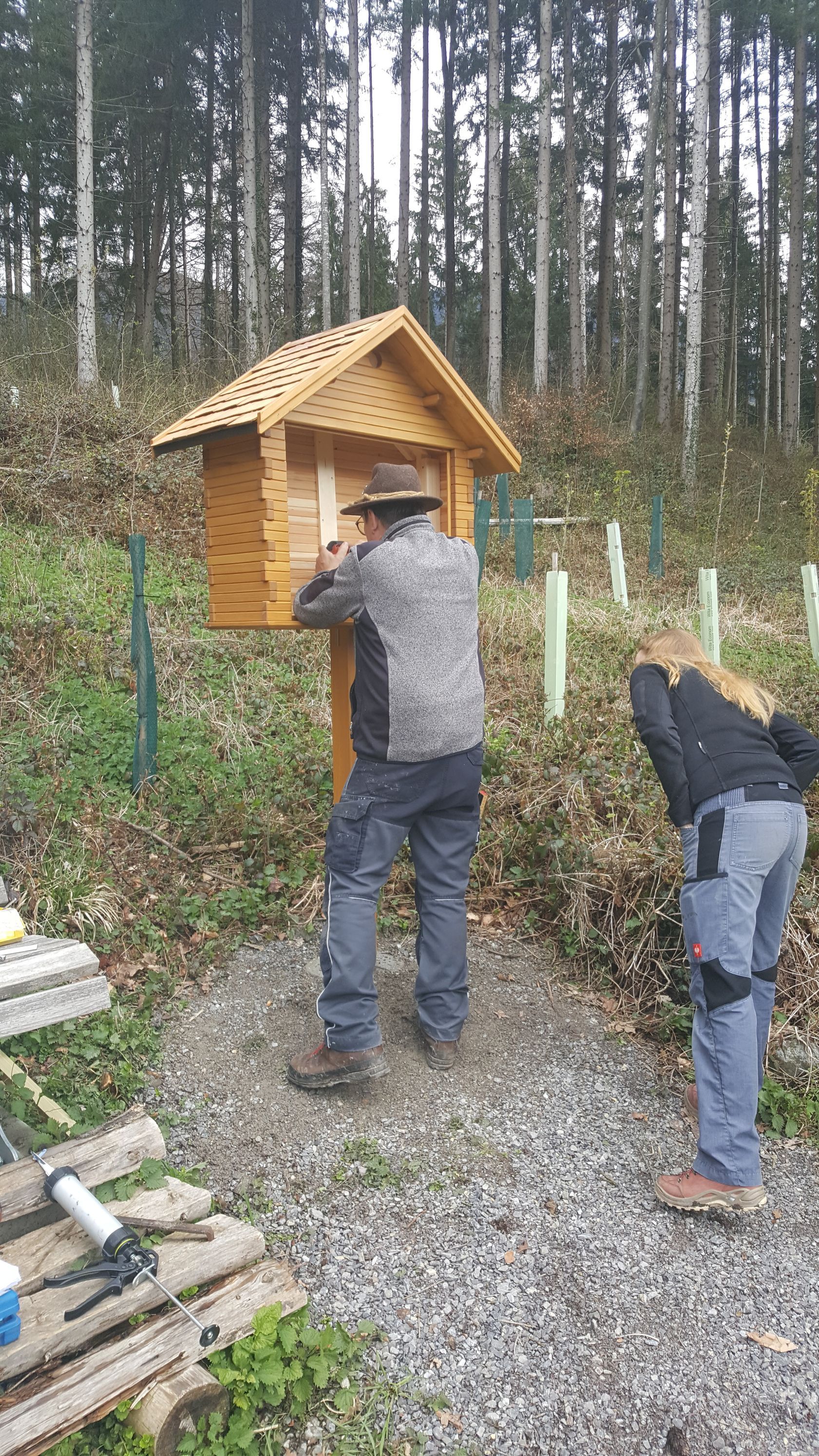 trafen sich Anni und Klaus Mathes schon am Morgen mit Bürgermeister Martin Konzett auf dem Runkelinaweg, um die genaue Positionierung der Texthäuser zu markieren. Ein wunderbares Gefühl!