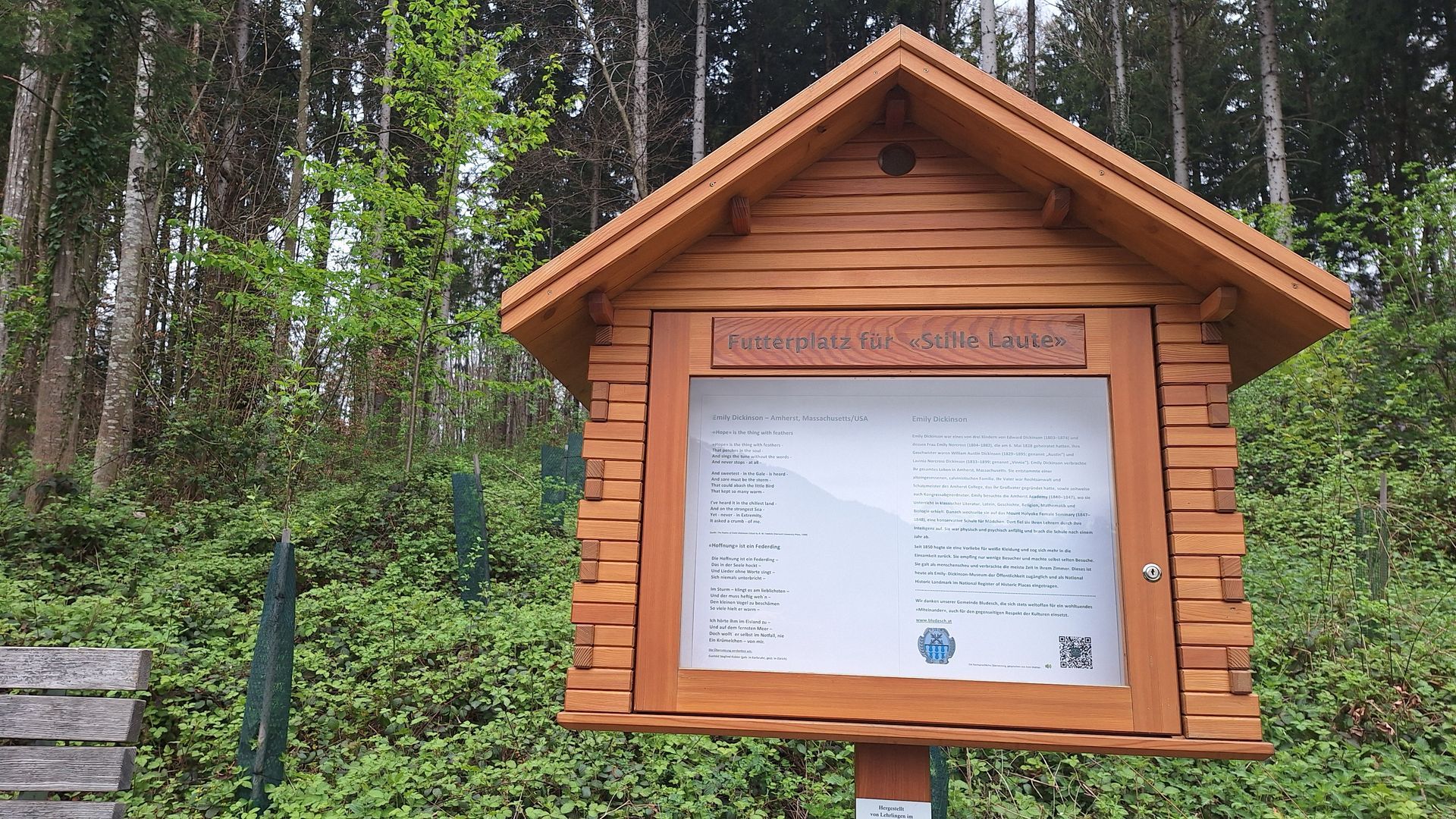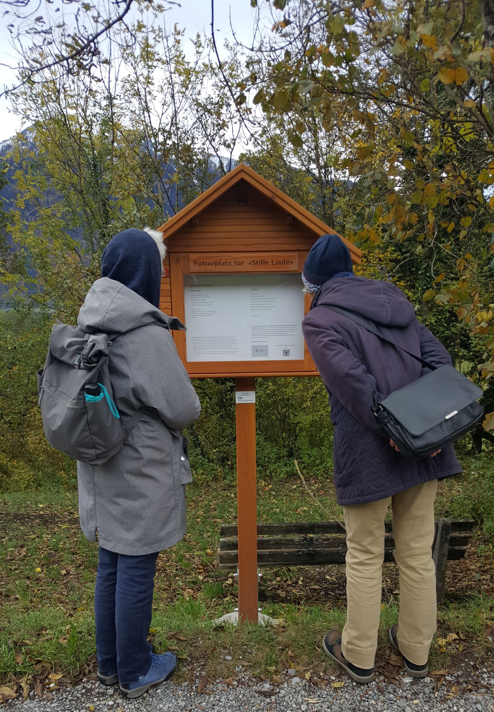 Ihre Tanzfreunde Beate und Werner kamen mit Verwandten, die aus Deutschland zu Besuch im Ländle weilen, auf den Literaturweg «Stille Laute». Zu acht erlebten alle miteinander drei wertvolle und fröhliche, aber auch tiefgehende Stunden. Anni erzählte Wissenswertes und alle lauschten mittels der QR Codes in den Häuschen auch den Stimmen der Dichter:innen.