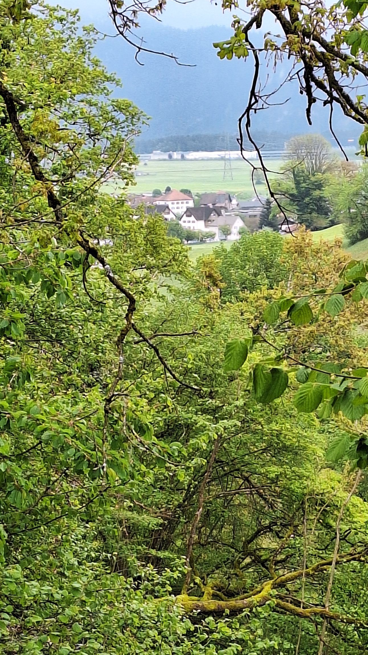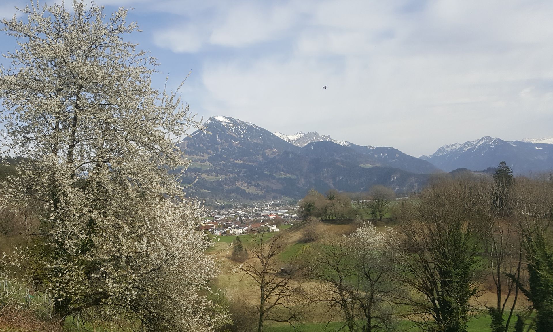Beim letzten Häuschen angekommen, das wiederum denTreffpunkt bei der 1. Info-Tafel darstellt, bot die Aussicht beim Sandloch ein einzigartiges Panorama auf Bludesch.
