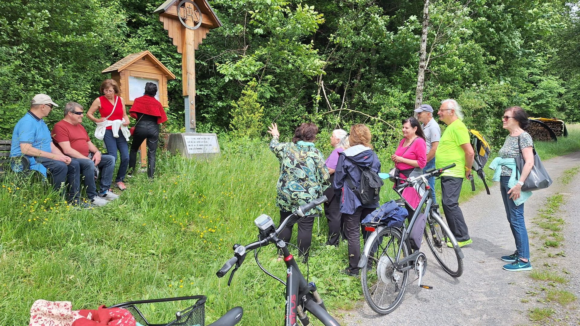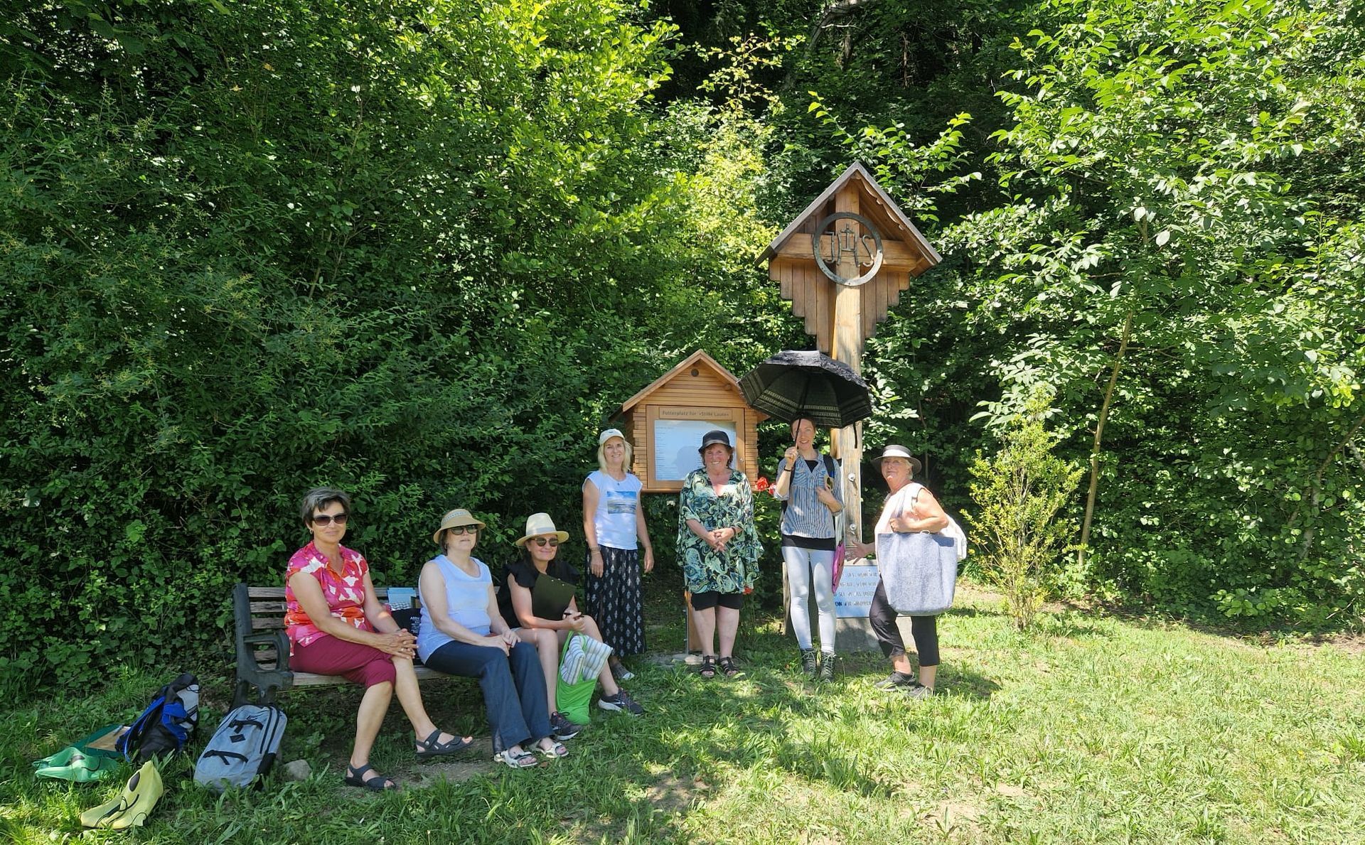 Begleitet von Anni Mathes spazierten sie von einem Texthaus zum nächsten, genossen mittels QR-Code auch die Audio-Aufnahmen der Texte. Sie waren begeistert von dieser besonderen Naturlandschaft mit ihren kostbaren Magerwiesen, mit schattenspenden Sträuchern, der Ruhe des Waldes und auch von den Sitzgelegenheiten entlang des Literaturweges. Sie konnten sich auch von der Vielfalt der Texte überzeugen, die einen Literaturweg für sehr viele Menschen ermöglichen. In Christine wurden Erinnerungen an die Landschaft ihrer Kindheit in Salzburg geweckt.