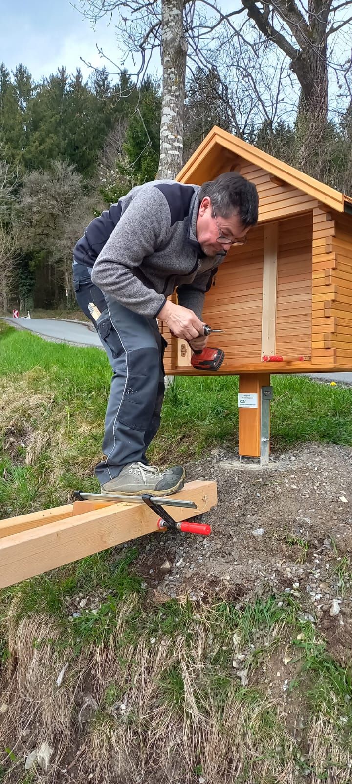 sandte Bauhofmitarbeiter Norbert ein Foto vom Fortschritt der betonierten Fundamente, die er und sein Kollege Richard mit großer fachlicher Kompetenz hergestellt haben. Nun kann der Beton langsam trocknen, während die Texthäuser im AZV Hohenems gut gelagert und aufgehoben sind. Ein herzliches Danke an Norbert und Richy!