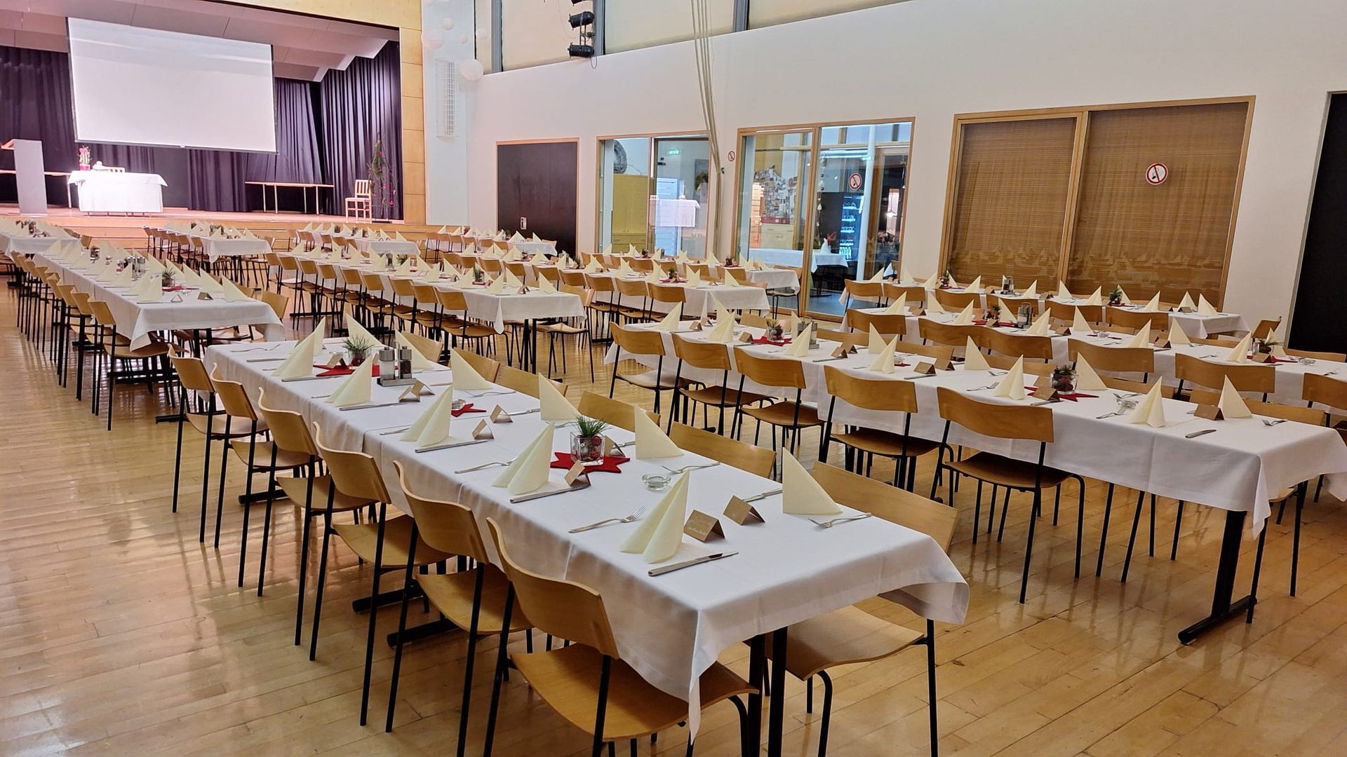 So geschmackvoll dekoriert hatte die Wirtin Sabrina mit ihrem Team den Sunnasaal in Thüringerberg. Sehr empfehlenswert für Geburtstagsfeste usw.