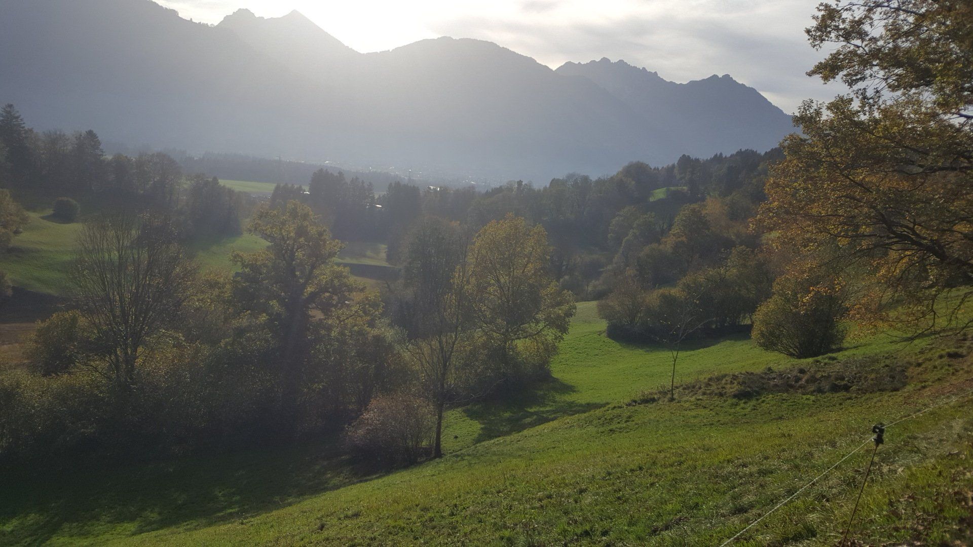 Ca. 300 m führen durch den Wald, wo sich immer wieder Fenster hinunter nach Gais und Nenzing, sowie hinauf in die Bergwelt öffnen. Bildnachweis © Matthias Schnetzer/Bludesch - A